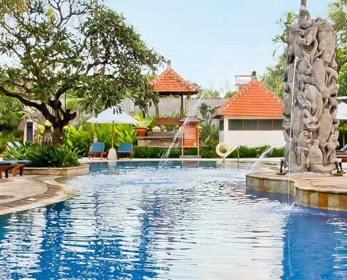 Located in a peaceful area at South Kuta, Bali Rani Hotel is only short drive from Bali International Air Port ‘Ngurah Rai’ and just steps away from Bali’s beach front shopping mall, international restaurants, the biggest water recreational park and other family entertainment including famous Kuta Beach.