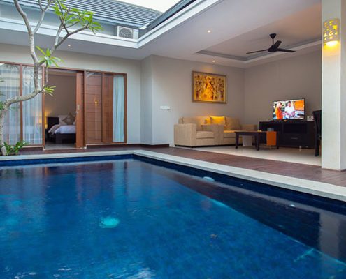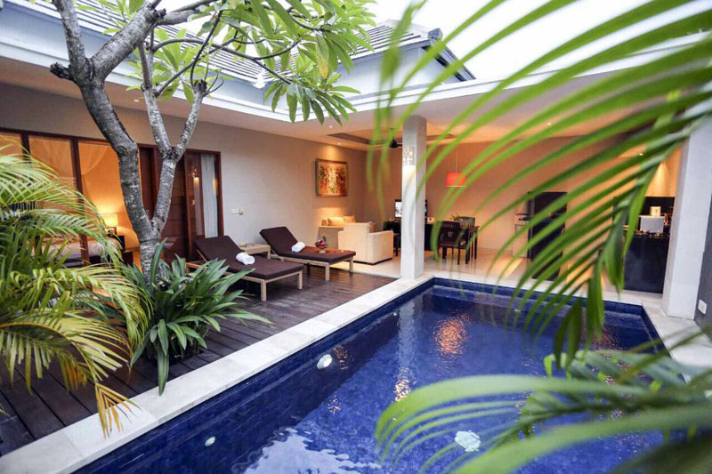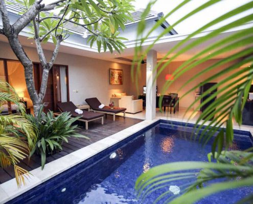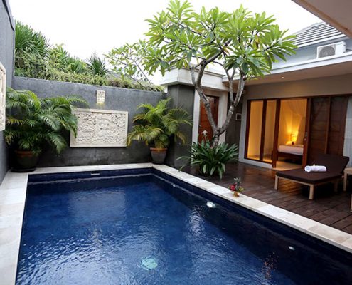 Set in modern minimalist, exclusive villa’s good location is nestled among upscale shops and Bali’s best dining scene and nightlife entertainments. Each of villa with their own pool, fashionable, Balinese entrance gate, living area pavilion, dining area and kitchenette.
